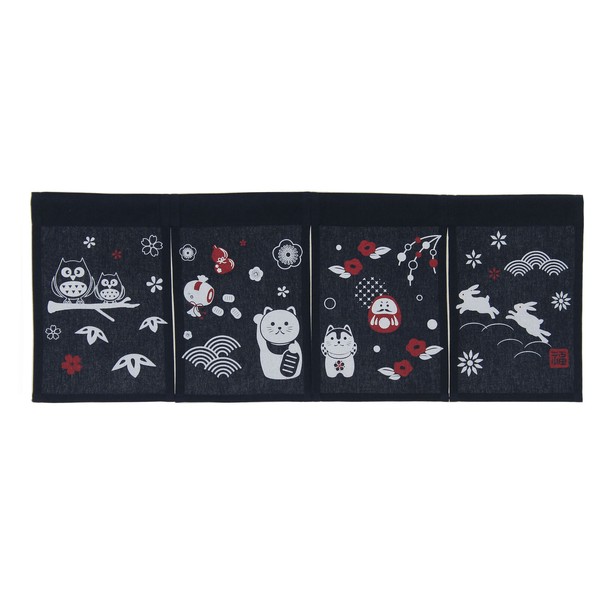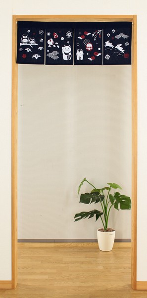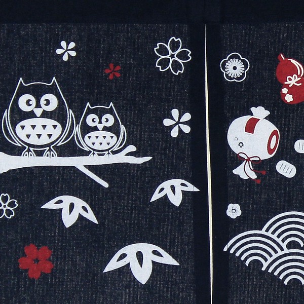 【和風・ふくろうのれん】ふくろう七福神:幅85cm×長さ150cm【日本製(Made in Japan)】