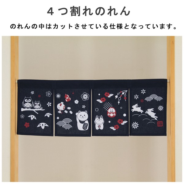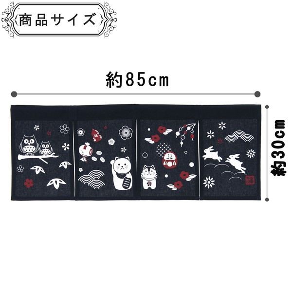 | 商品名 | のれん 縁起物 ありがたや 招き猫 3連 だるま ふくろう 和風 紺 85×30cm |
