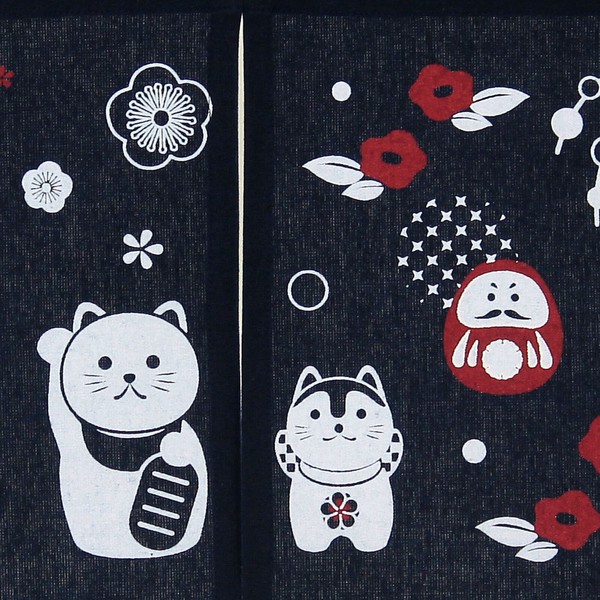 【和風のれん】★縁起のれん★七福ねこ!「招き猫柄」 幅85cm×長さ30cm【日本製(Made in Japan)】