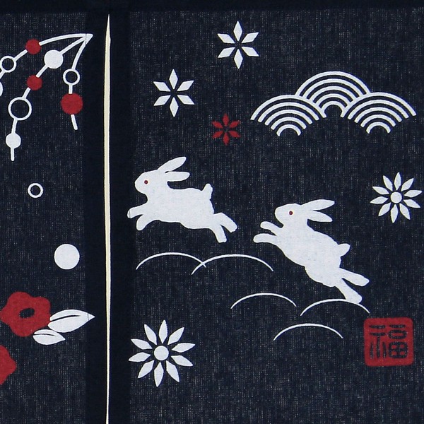| 商品紹介 | 縁起の良いのれん 様々な縁起物がちりばめられ、華やかで活気ある雰囲気を演出しています。 ダルマ、打ち手の小づち、手まり、招き猫、雪ウサギ、ふくろう、など縁起の良いアイテムがにぎやかに配置され丸いモチーフにまとまっています。 |