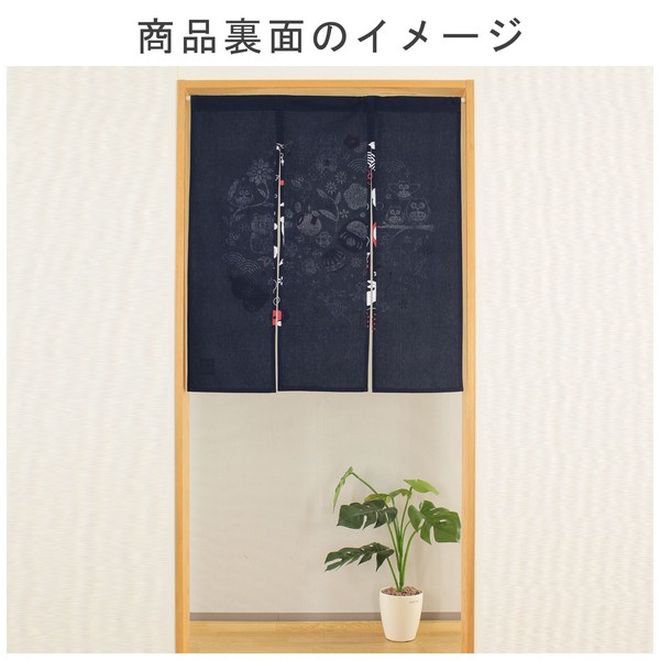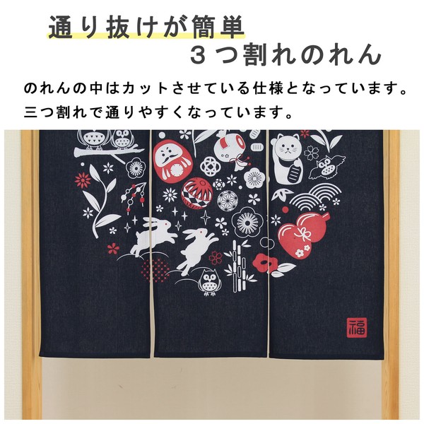 | 商品名 | のれん 縁起物 ありがたや 招き猫 3連 だるま ふくろう 和風 紺 85×90cm |