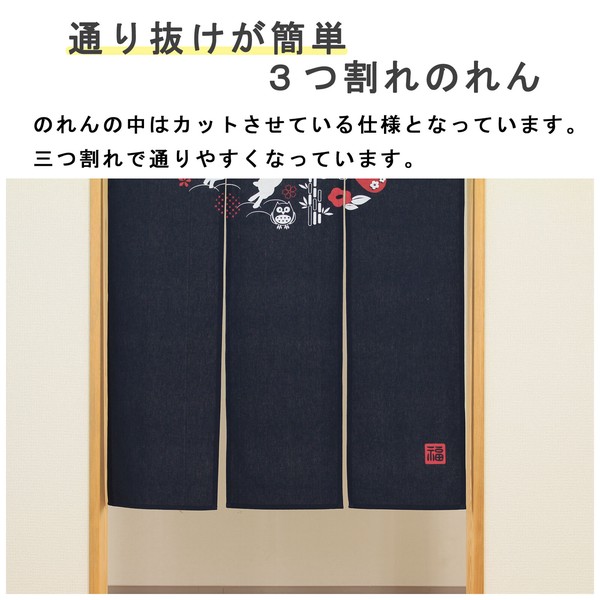 | 商品名 | のれん 縁起物 ありがたや 3連 招き猫 だるま 和風 紺 85×150cm |