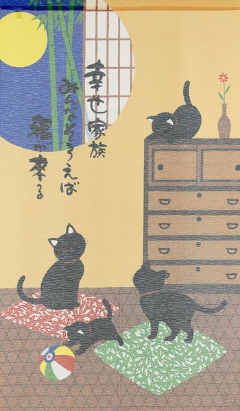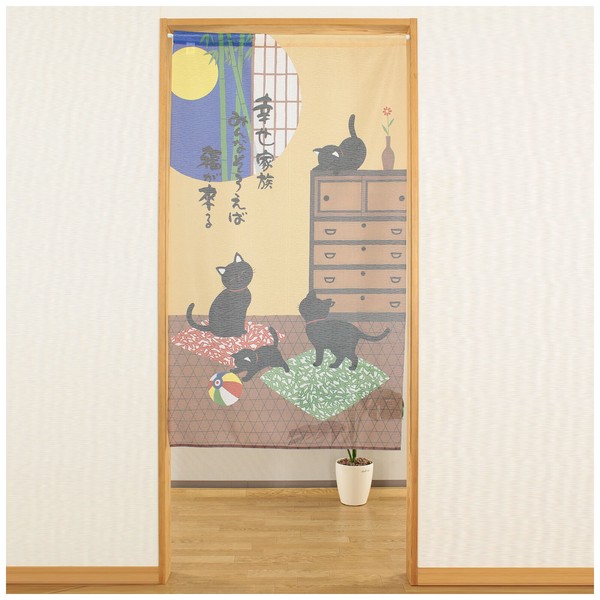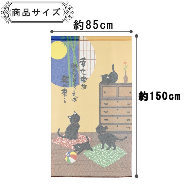 | 商品名 | のれん 幸せ家族 猫 黒猫 月夜 紙風船 竹 和風 和柄 85×150cm |