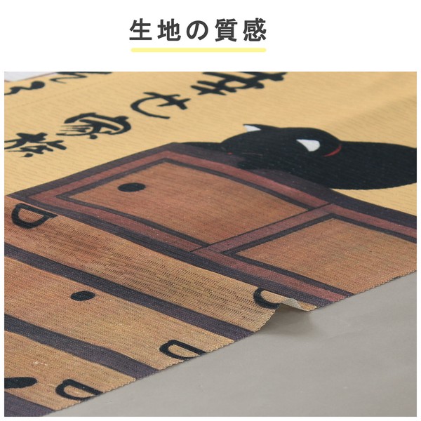 【和風のれん】招き猫福よこい 約幅85cm×長さ150cm アイボリー