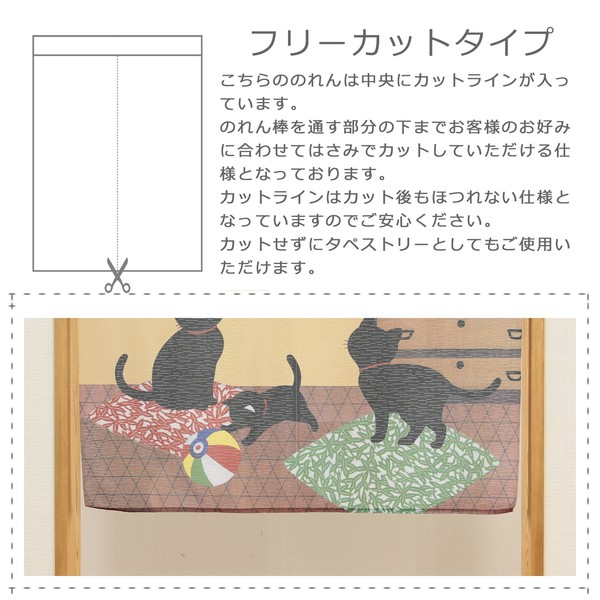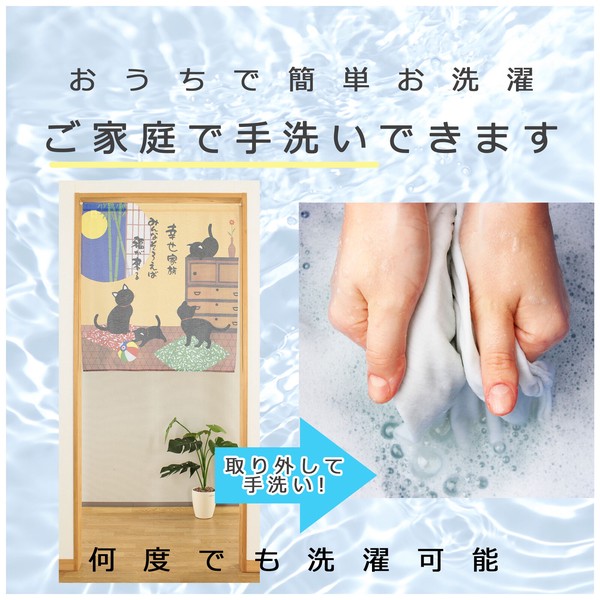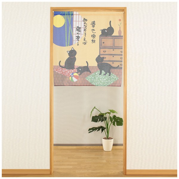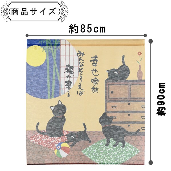 | 商品名 | のれん 幸せ家族 猫 黒猫 月夜 紙風船 竹 和風 和柄 85×90cm |
