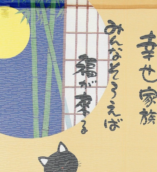 のれん 幸せ家族 猫 黒猫 月夜 紙風船 竹 和風 和柄 85×90cmの別カット写真