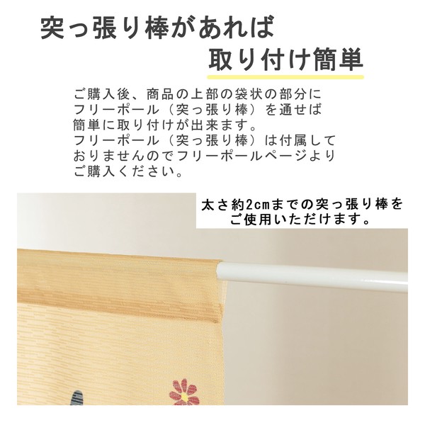 洋風のれん ステッチキャット 猫 ネコ 花 フラワー 風船 ステッチ刺繍 黒猫 ナチュラル 幅85cm×高さ(丈)150cm