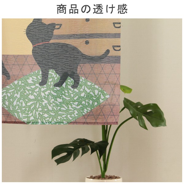 【レースプリントのれん】ネコとダリアの柄 約幅85cm×長さ170cm