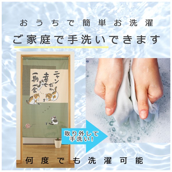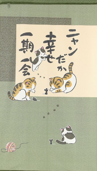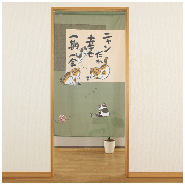 | 商品名 | のれん ニャンだか幸せ 猫 ねずみ 一期一会 和風 和柄 グリーン 85×150cm |