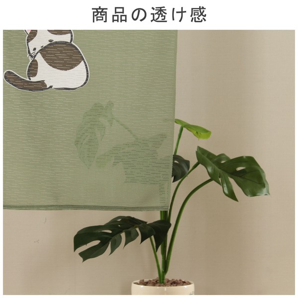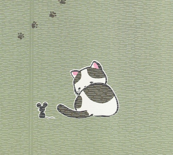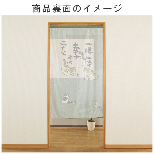 のれん ニャンだか幸せ 猫 ねずみ 一期一会 和風 和柄 グリーン 85×150cmの別カット写真