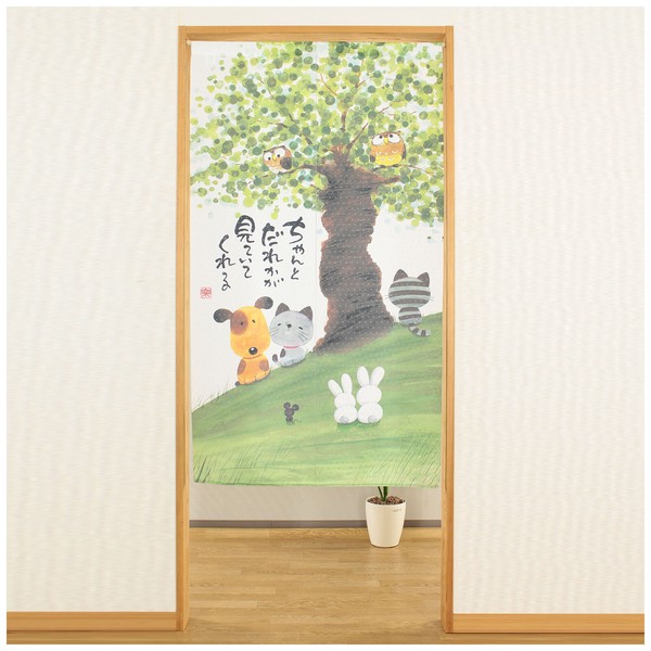 のれん 見ていてくれる 猫 ふくろう 犬 うさぎ ねずみ 和風 和柄 85×150cmの別カット写真