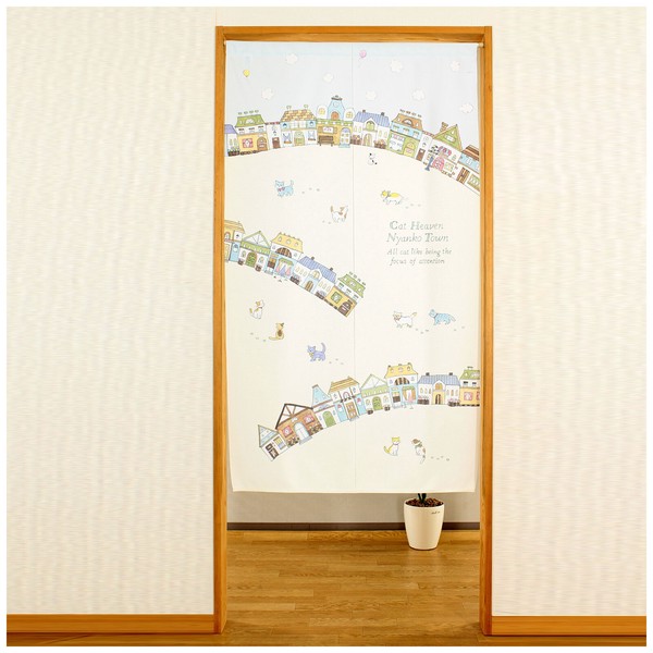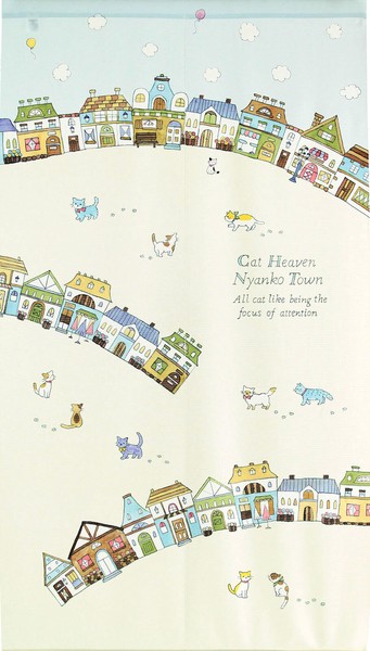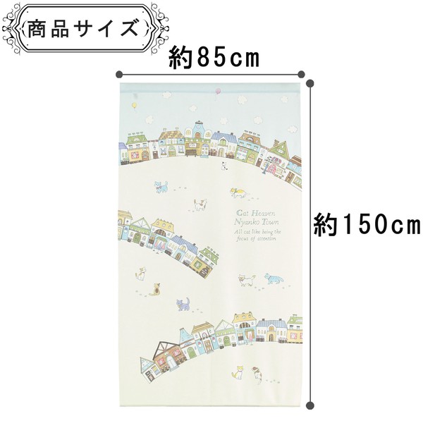 | 商品名 | のれん にゃんこタウン 町並み 街 猫 洋風 洋柄 ねこ ホワイト 幅85cm×高さ(丈)150cm |