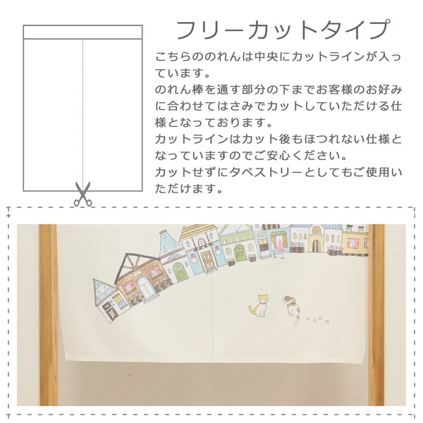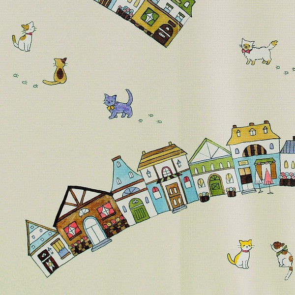 のれん にゃんこタウン 町並み 街 猫 洋風 洋柄 ねこ ホワイト 幅85cm×高さ(丈)150cmの別カット写真