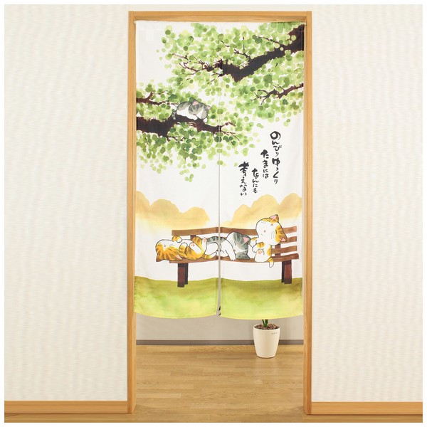 | 商品紹介 | レース生地に猫柄をプリントしました。 木のそばでゆったりとくつろぐ猫を描いた、和風デザインののれんです。 どこか力の抜けた猫の姿と、 「のんびりゆっくり たまにはなんにも 考えない」 という言葉が、忙しい毎日にそっと寄り添ってくれます。 木や自然を感じさせる落ち着いた雰囲気は、和室はもちろん、 玄関やリビングの間仕切りとしても相性抜群。 空間にやさしい癒しと、ほっと一息つける時間を運んでくれます。 インバウンド のれん/Noren/Japanese curtain/Japanese tapestry/Shop curtain |