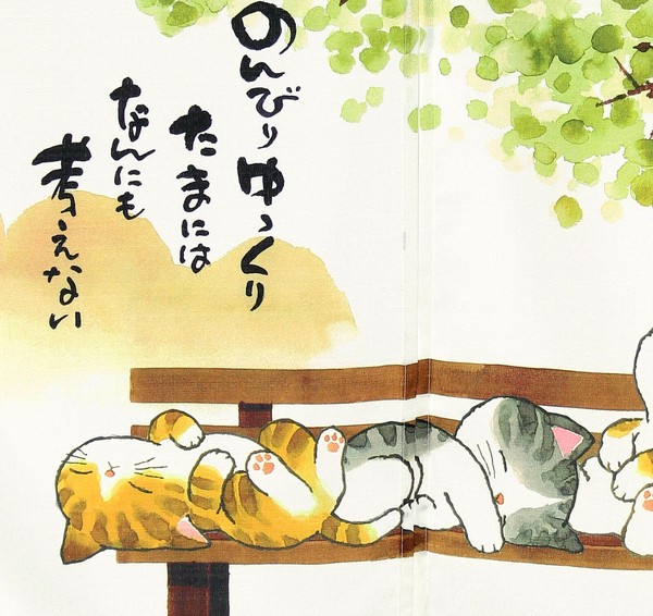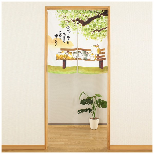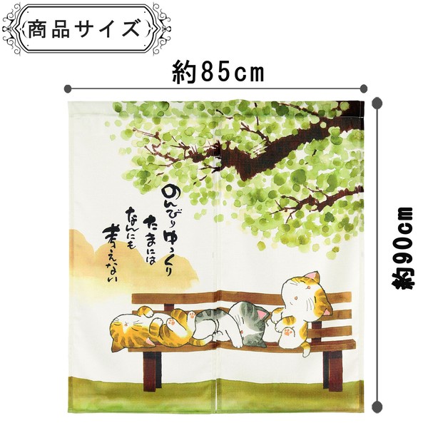 | 商品紹介 | レース生地に猫柄をプリントしました。 木のそばでゆったりとくつろぐ猫を描いた、和風デザインののれんです。 どこか力の抜けた猫の姿と、 「のんびりゆっくり たまにはなんにも 考えない」 という言葉が、忙しい毎日にそっと寄り添ってくれます。 木や自然を感じさせる落ち着いた雰囲気は、和室はもちろん、 玄関やリビングの間仕切りとしても相性抜群。 空間にやさしい癒しと、ほっと一息つける時間を運んでくれます。 インバウンド のれん/Noren/Japanese curtain/Japanese tapestry/Shop curtain |