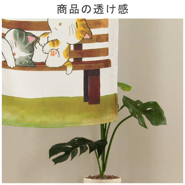 【小窓・カフェカーテン】ルーミーキャット 約幅100cm×長さ45cm ホワイト