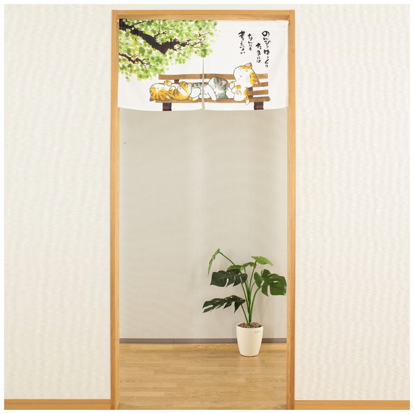 | 商品名 | のれん 和風 ゆったり猫 猫 ねこ 和柄 ホワイト 幅85cm×高さ(丈)45cm |
