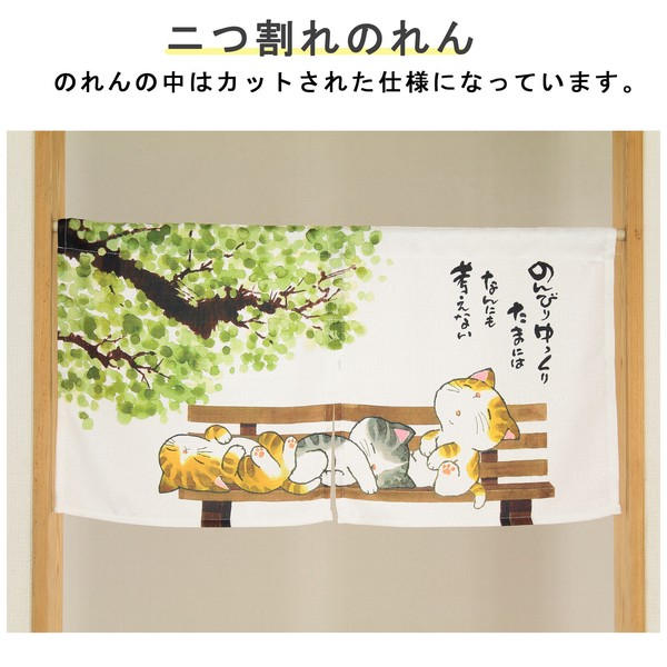 | 商品紹介 | レース生地に猫柄をプリントしました。 木のそばでゆったりとくつろぐ猫を描いた、和風デザインののれんです。 どこか力の抜けた猫の姿と、 「のんびりゆっくり たまにはなんにも 考えない」 という言葉が、忙しい毎日にそっと寄り添ってくれます。 木や自然を感じさせる落ち着いた雰囲気は、和室はもちろん、 玄関やリビングの間仕切りとしても相性抜群。 空間にやさしい癒しと、ほっと一息つける時間を運んでくれます。 インバウンド のれん/Noren/Japanese curtain/Japanese tapestry/Shop curtain |