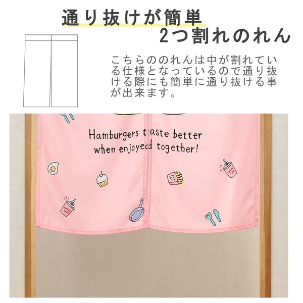 | 商品名 | のれん バーガーキティ ハンバーガー ポテト ケーキ 目玉焼き 猫 ねこピンク 幅85cm×高さ(丈)150cm |