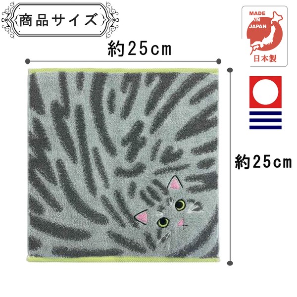 | 商品名 | 今治タオル はんかち ニャンコシリーズ シルバータビー サバトラ 猫 日本製 グレー 25×25cm |