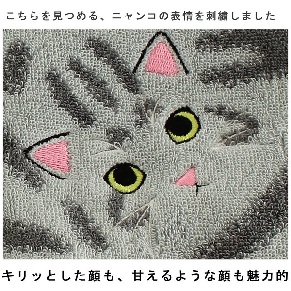 | 商品紹介 | 猫種ごとに使用する糸を変えニャンコの毛並みを表現しました。 本物のニャンコを触っているかのような楽しいタオルです。 こだわりの優れた品質の今治製、給水性が良く高級感のある手触りです。 こちらを見つめる、ニャンコの表情を刺繍しました。 キリッとした顔も、甘えるような顔も魅力的です。 お気に入りの”うちの子”と毎日を過ごすのに最適なアイテムです。 |