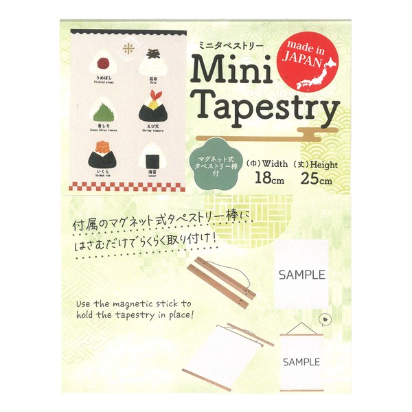 | 商品紹介 | 【デザイン】日本の定番フード「おにぎり」をモチーフにした、ほっこりかわいいタペストリーです。白いごはんと海苔のシンプルな形に、梅・いくら・昆布などをイメージしたデザインが、見る人にやさしく親しみのある印象を与えます。お部屋に飾るだけで、あたたかく楽しい雰囲気を演出します。和室はもちろん、キッチンやダイニング、子ども部屋にもぴったり。日常使いのインテリアとしてはもちろん、イベント装飾やプレゼントにもおすすめの一枚です。 18x25cmのミニタペストリーの特徴 ・コンパクトなサイズ感で、壁やデスク回りなどの限られたスペースにも飾りやすい。 ・軽量で取り付けや移動が簡単 ・コンパクト・軽量なので、海外のお客様のお土産に最適です。 ・お部屋のアクセントやプレセントにも最適 ・季節やイベントに合わせて気軽に架け替えが可能。 タペストリー 壁飾り 掛け軸 和風 和柄 マグネット式 |