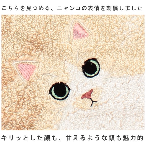 | 商品紹介 | 確かな品質で知られる「今治タオル」に、親しみやすい猫デザインのフェイスタオルが登場。 猫種ごとに使用する糸を変え、ニャンコの毛並みを表現しました。 こちらを見つめる、ニャンコの表情を刺繍しました。 ハンドタオルとは異なる表情を刺繍しているため、また違った可愛らしさを楽しめます。 シリーズで揃えて使うのも、猫好きの方におすすめです。 本物の猫に寄り添ってもらっているような、癒やされタオルです。 フェイスタオル以上、バスタオル未満。これ一枚で全身OK。 フェイスタオルより大きく、バスタオルよりコンパクト。 この1枚で全身をしっかり拭ける、使い勝手の良いサイズ感です。 今治タオルならではの高い吸水性と、やわらかく心地よい肌ざわりで洗顔後や入浴後の水分をやさしく吸い取ります。 インバウンド 猫 ねこ |