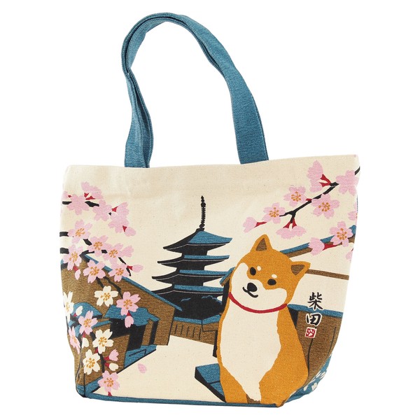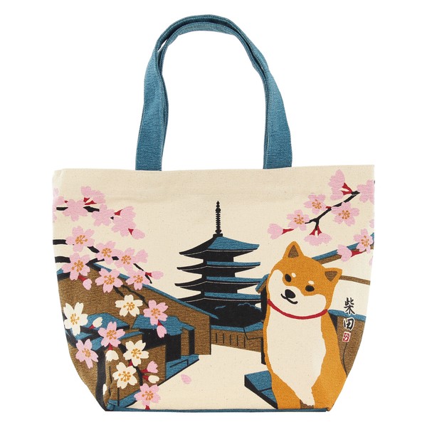 M size トートバッグ はるのみやこしばた 柴犬 桜 寺 古都 五重塔 ナチュラル 25×33cm