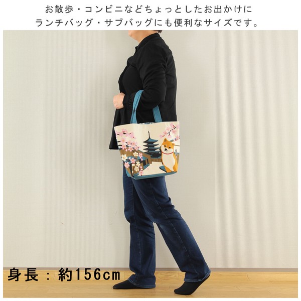 | 商品名 | M size トートバッグ はるのみやこしばた 柴犬 桜 寺 古都 五重塔 ナチュラル 25×33cm |