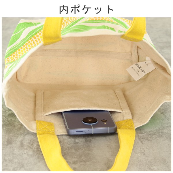 ミニトートバッグ 内ポケット付き トウモロコシ コーン とうきび ナチュラル 20×30cmの別カット写真