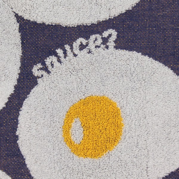 | 商品紹介 | 食べること、料理が好きな人へ。 どんな嫌なことがあっても、食べ物は心を温かく、幸せにしてくれる。 タオルの名産地・今治で丁寧に織り上げた、上質なジャガード織タオル。 毎日使うものだからこそ、素材・織り・肌ざわりにこだわりました。 ■ デザイン ベースは総柄の大胆な織り柄。 そこに、ころんと可愛い目玉焼きのワンポイント刺繍を添えました。 主張しすぎない大人かわいいデザインで、日常使いしやすい一枚です。 プリントではなくジャガード織で柄を表現しているため、 立体感があり、上品な仕上がり。 刺繍の立体感がアクセントになり、シンプルながら印象に残ります。 ■ 素材・使い心地 普通糸と無撚糸を組み合わせ、 ほどよいコシとふんわりやさしい肌ざわりを実現。 吸水性にも優れ、手洗い後もしっかり水分を吸収します。 |