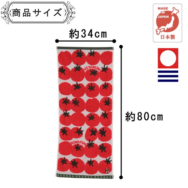 はらぺこ フェイスタオル トマト 今治タオル 刺繍 ジャガード織 レッド 34×80cmの別カット写真