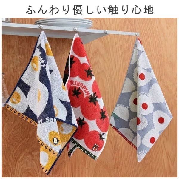 | 商品紹介 | 食べること、料理が好きな人へ。 どんな嫌なことがあっても、食べ物は心を温かく、幸せにしてくれる。 タオルの名産地・今治で丁寧に織り上げた、上質なジャガード織タオル。 毎日使うものだからこそ、素材・織り・肌ざわりにこだわりました。 ■ デザイン ベースは総柄の大胆な織り柄。 そこに、ころんと可愛い目玉焼きのワンポイント刺繍を添えました。 主張しすぎない大人かわいいデザインで、日常使いしやすい一枚です。 プリントではなくジャガード織で柄を表現しているため、 立体感があり、上品な仕上がり。 刺繍の立体感がアクセントになり、シンプルながら印象に残ります。 ■ 素材・使い心地 普通糸と無撚糸を組み合わせ、 ほどよいコシとふんわりやさしい肌ざわりを実現。 吸水性にも優れ、手洗い後もしっかり水分を吸収します。 |