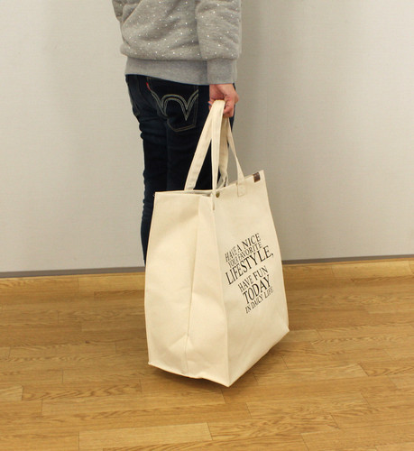 | 商品紹介 | 裏生地は濡れたものを入れてもいいようにコーティング加工がされた大型のBAGです。 |