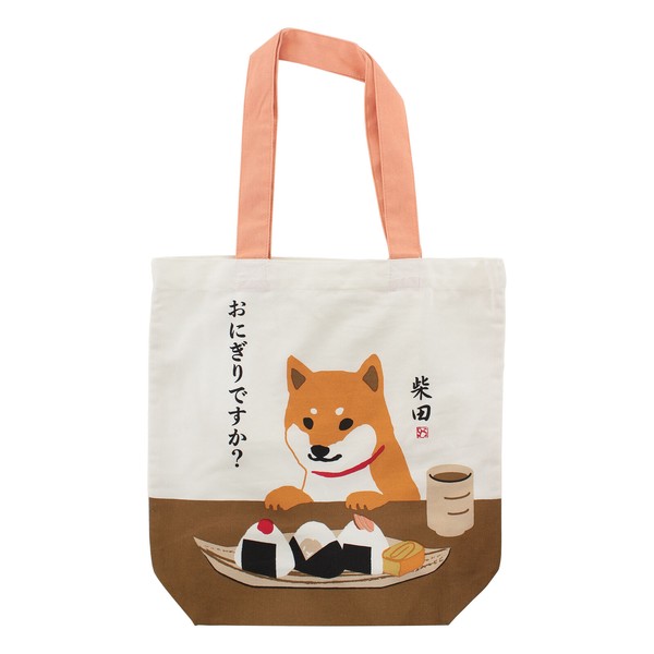 A4サイズ トートバッグ 内ポケット付き おにぎりですか 柴犬 犬 おにぎり アイボリー 38cm×39cm