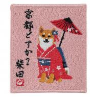 ワッペンマグネット 京都どすか 柴犬 舞妓 和柄 和風 日本 ピンク 横7cm×縦8cm