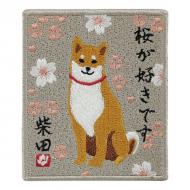 ワッペンマグネット 柴田 かみなりもんしばた 柴犬 雷門 浅草 日本 和風 和柄 ベージュ 横7cm×縦8cm