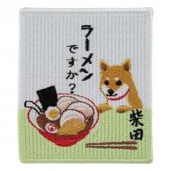 ワッペンマグネット ラーメンですか 柴犬 なると 玉子 日本 和風 和柄 グリーン 横7cm×縦8cm