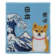 ワッペンマグネット 日本 おおなみしばた 柴犬 浪裏に富士 富士山 白波 日本 ブルー 横7cm×縦8cm