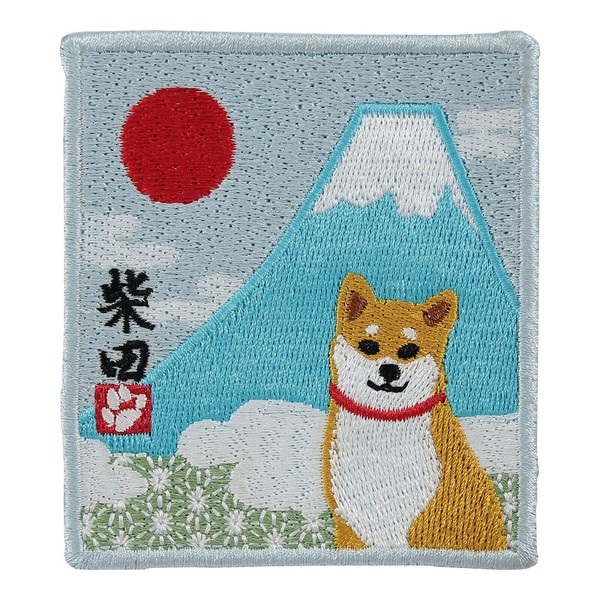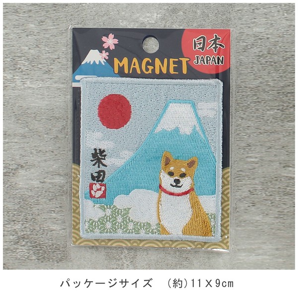 ワッペンマグネット 柴田 にほんのしばた 柴犬 富士山 日本 朝日 和風 和柄 ブルー 横7cm×縦8cm