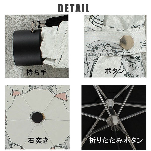 | 商品紹介 | UVカット99%で、内側はブラックPUコーティングなのでUV対策にぴったりです。 晴雨兼用で、急な雨にも安心。 毎日の持ち運びにも便利な、軽くてコンパクトな折りたたみ傘。 晴れの日にも、雨の日にもかわいい猫柄で快適に。 |