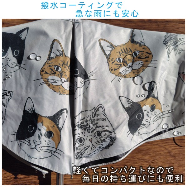 軽量 折りたたみ傘 晴雨兼用 日傘 雨傘 UVカット 遮光 遮熱 ヴェリアスキャット 猫 50cmの別カット写真