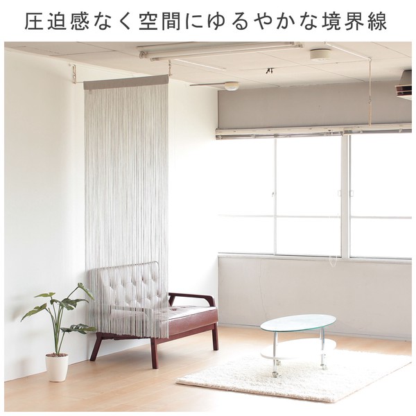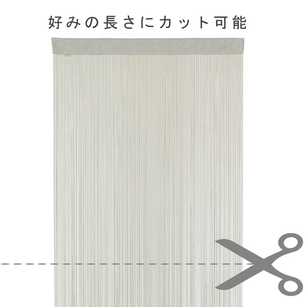 | 商品紹介 | やさしくゆれるひものれん 布のれんよりも軽やかで、光や風を通しやすい仕上がり。 キッチンとリビングの間や廊下の目隠しに最適。 圧迫感なく、やわらかい空間を作り出します。 お家・店舗どんな場所でもご利用頂けます。 肌触りがよく、さらさらと流れるような手触り ハサミで切れるフリーカットひものれん フリーカット仕様なのでお好みの長さに裾をカットしてご使用できます。 |