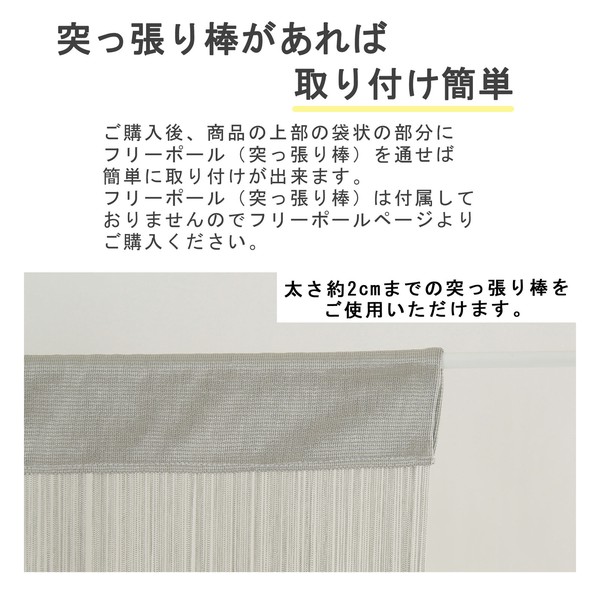ひものれん ストリングカーテン 紐のれん 丈長 ソフトな肌触りのポリエステル ひもスクリーン グレー 85×210cmの別カット写真