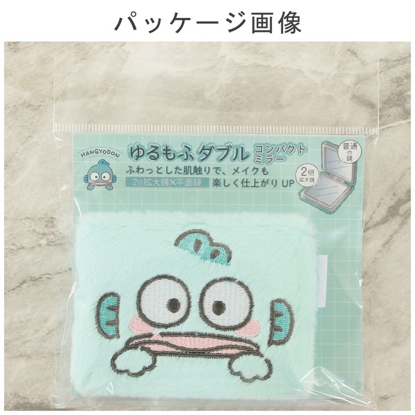 コンパクトミラー ハンギョドン 角型 刺繍 ダブルミラー 2倍拡大鏡 ブルー 9×6.8cmの別カット写真